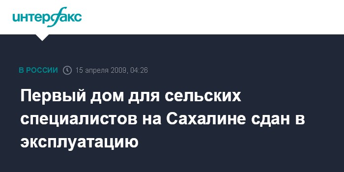 Южно-Сахалинск. 15 апреля. ИНТЕРФАКС - ДАЛЬНИЙ ВОСТОК - Первый дом для сельчан возведен в Сахалинской области в рамках строительства социального жилья.