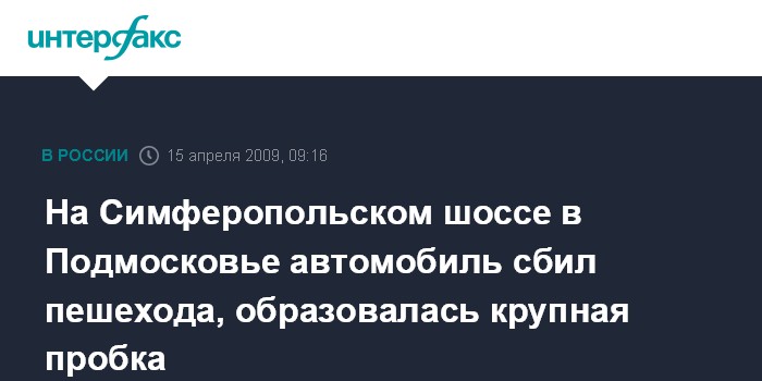 Москва. 15 апреля. INTERFAX.RU - Дорожно-транспортное происшествие, в результате которого погиб один человек, произошло рано утром в среду в Московской области на Симферопольском шоссе, передает корреспондент "Интерфакса".