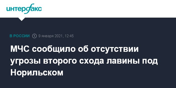 По данным Единой дежурной диспетчерской службы Норильска, информации по угрозе второго схода лавины нет, сказали в МЧС.