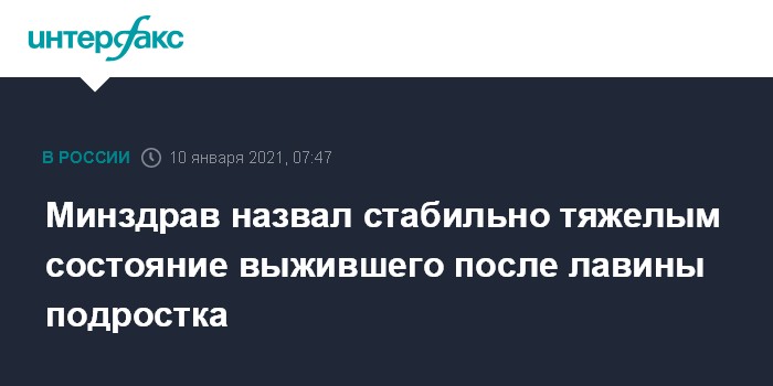 Минздрав назвал стабильно тяжелым состояние выжившего после лавины подростка