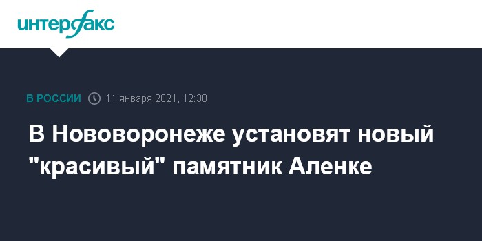 Москва. 11 января. INTERFAX.RU - Власти города Нововоронеж (Воронежская область) приняли решение об установке нового памятника Аленке взамен демонтированного арт-объекта, "красота" которого вызвала бурное обсуждение в обществе, сообщила "Интерфаксу" замглавы горадминистрации Светлана Тулинова.