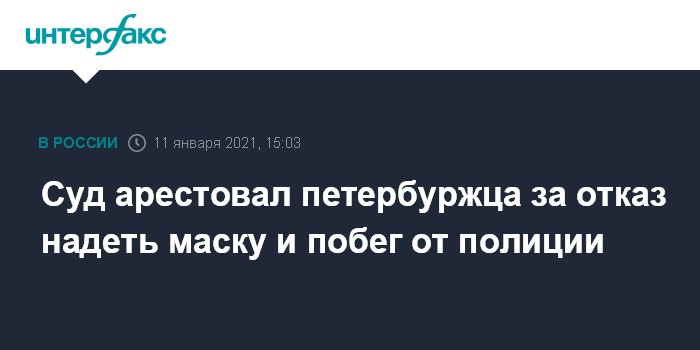 Суд арестовал петербуржца за отказ надеть маску и побег от полиции