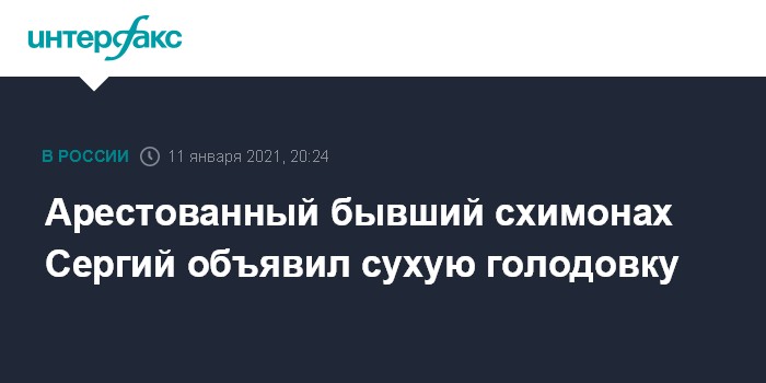 Москва. 11 января. INTERFAX.RU - Бывший схимонах Сергий (Николай Романов), арестованный по обвинению в склонении к самоубийству, объявил в знак протеста сухую голодовку.