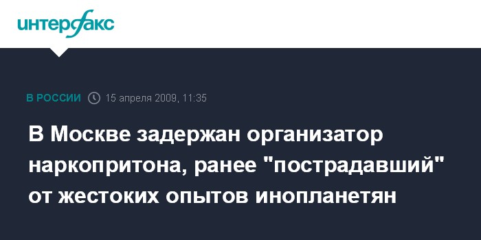 В Москве задержан организатор наркопритона, ранее "пострадавший" от жестоких опытов инопланетян