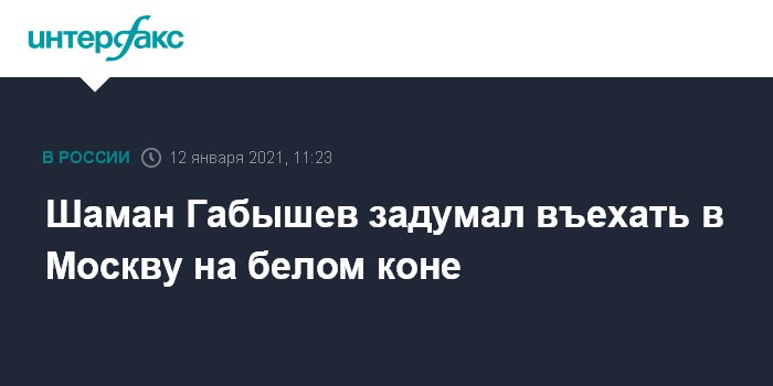 Москва. 12 января. INTERFAX.RU - Шаман Александр Габышев из Якутска объявил, что в марте начнет новый "поход" на Москву, рассказал "Интерфаксу" координатор "Правозащиты Открытки" Алексей Прянишников. По его словам, Габышев собирается добраться до столицы на белом коне, а его сторонники поедут на автомобилях.
