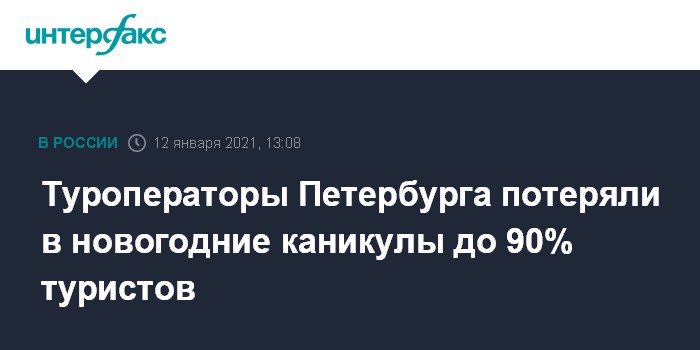 Москва. 12 января. INTERFAX.RU - Туроператоры Санкт-Петербурга в новогодние каникулы приняли лишь 10-15% от прошлогоднего потока туристов, до 90% клиентов аннулировали туры из-за введенных властями города ограничений, сообщила порталу "Интерфакс-Туризм" во вторник пресс-секретарь Российского союза туриндустрии (РСТ) Ирина Тюрина.