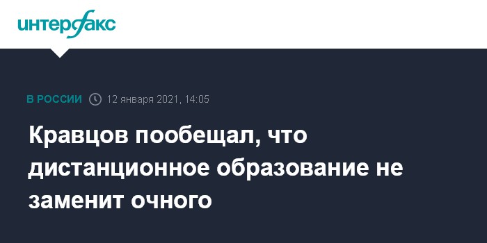 Москва. 12 января. INTERFAX.RU - Дистанционное обучение никогда не заменит традиционное, но будет использоваться точечно по мере необходимости, сказал министр просвещения РФ Сергей Кравцов.