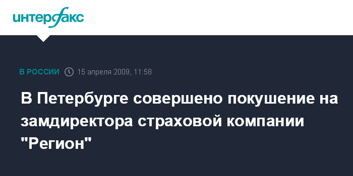 В Петербурге совершено покушение на замдиректора страховой компании "Регион"