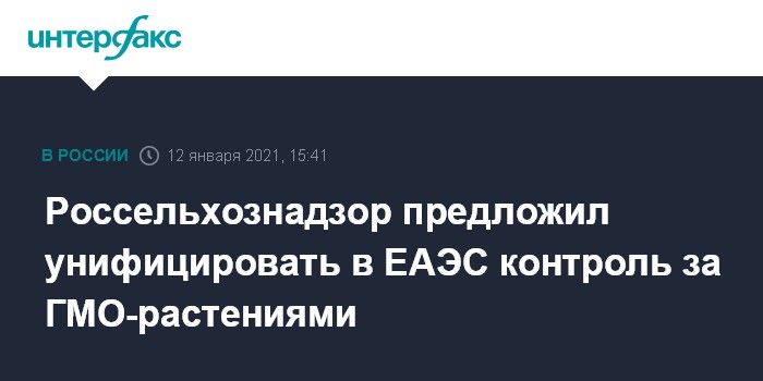 Москва. 12 января. INTERFAX.RU - Россельхознадзор предлагает унифицировать в ЕАЭС контроль за выращиванием и перемещением семян и растений с ГМО.