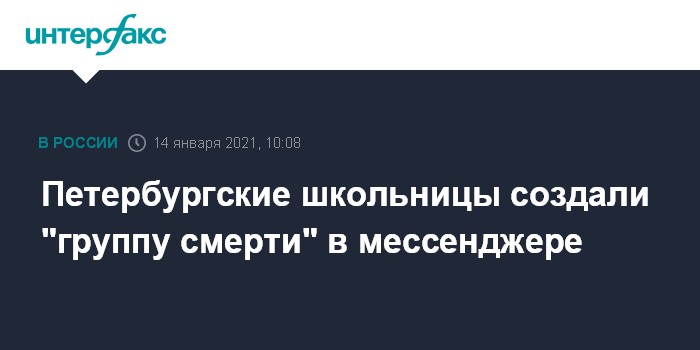 Москва. 14 января. INTERFAX.RU - В Петербурге три школьницы создали в мессенджере группу смерти, проводится проверка, сообщила в четверг пресс-служба регионального главка МВД.