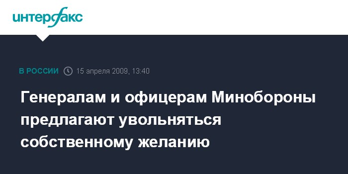 "Министр обороны дал указание увольнять генералов и офицеров строго на добровольной основе по личным рапортам. Их увольнение по оргштатным мероприятиям приостановлено из-за отсутствия средств на эти цели", - сказал собеседник агентства.