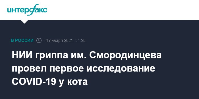 Москва. 14 января. INTERFAX.RU - НИИ гриппа имени Смородинцева провел первое в России генетическое исследование коронавируса, который выявили у домашнего кота в Петербурге. Об этом институт сообщил на своей странице ВКонтакте.