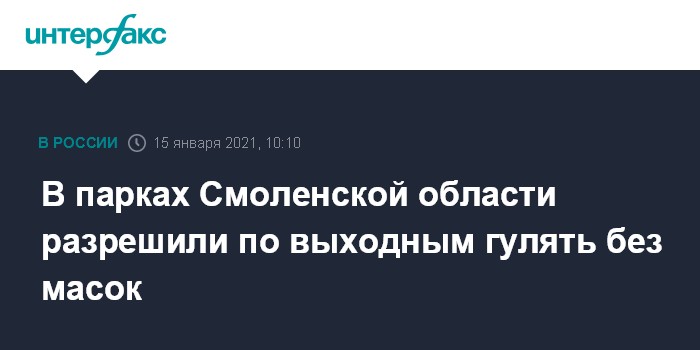 "Теперь в выходные и праздничные дни смоляне могут посещать парки культуры и отдыха, а также другие места массового посещения граждан с неконтролируемым входом (например, открытые рынки) без средств защиты органов дыхания", - говорится в сообщении.