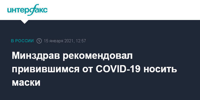 Москва. 15 января. INTERFAX.RU - Те, кто привился от коронавируса, должны продолжать носить маски вне зависимости от титра антител до формирования популяционного иммунитета, заявил министр здравоохранения Михаил Мурашко.