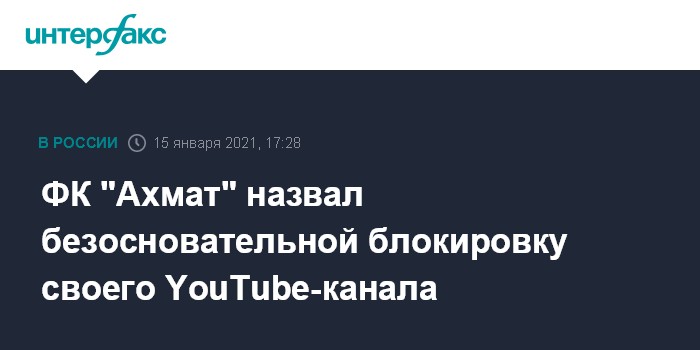 Москва. 15 января. INTERFAX.RU - Канал футбольного клуба "Ахмат" на YouTube заблокирован, в клубе блокировку назвали безосновательной.