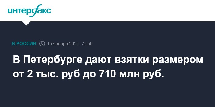 В Петербурге дают взятки размером от 2 тыс. руб до 710 млн руб.