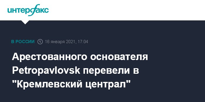 Арестованного основателя Petropavlovsk перевели в "Кремлевский централ"