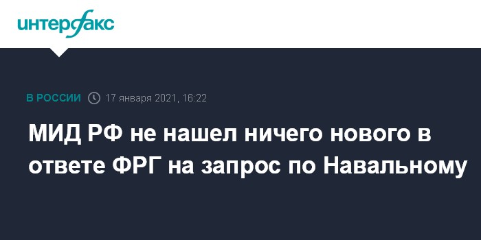 16 января немецкие СМИ сообщали, что Министерство юстиции ФРГ передало российской стороне материалы в ответ на запросы по делу Навального. Ведомство ответило на четыре правовых запроса, поступивших от РФ. В частности, оно передало протоколы допроса Навального сотрудниками прокуратуры Берлина.