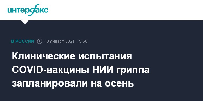 В августе и.о. директора института Дмитрий Лиознов сообщал журналистам, что рассчитывает на старт клинических испытаний вакцины в начале 2021 года и на получение результатов до конца года.