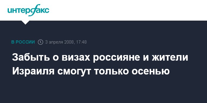 Москва. 3 апреля. INTERFAX.RU - Посольство РФ в Тель-Авиве опровергает информацию о том, что сроки перехода на безвизовый режим между Россией и Израилем переносятся по вине российской стороны.