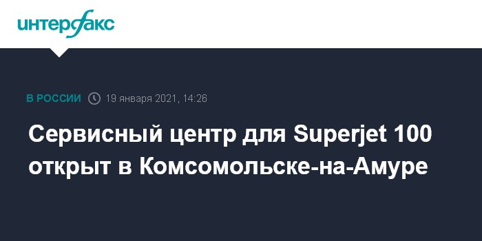 Москва. 19 января. INTERFAX.RU - Новый сервисный центр для самолетов Superjet 100 открыт в Комсомольске-на-Амуре, сообщили в пресс-службе "Ростеха".