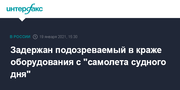 Задержан подозреваемый в краже оборудования с "самолета судного дня"
