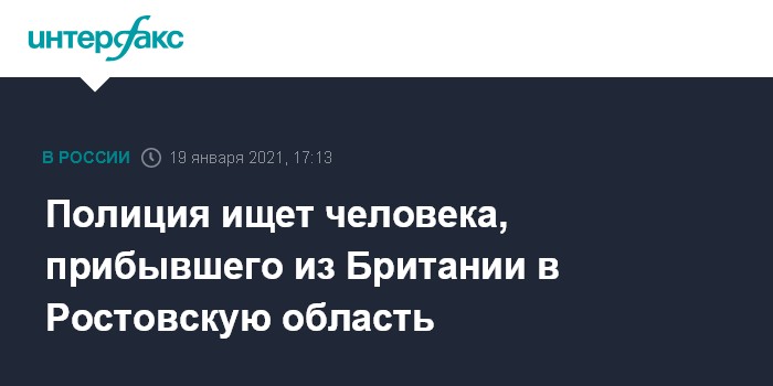Москва. 19 января. INTERFAX.RU - Полиция ведет поиски одного из прибывших в Ростовскую область из Великобритании с целью недопущения распространения нового штамма коронавируса, сообщил глава регионального управления Роспотребнадзора Евгений Ковалев на заседании регионального штаба по COVID-19.