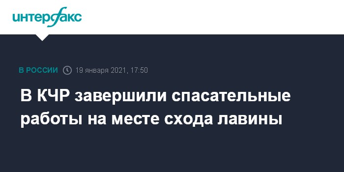 Москва. 19 января. INTERFAX.RU - Спасательные подразделения завершили работы на склоне горы Мусса-Ачитара горнолыжного курорта Домбай в Карачаево-Черкесии, где накануне сошла снежная лавина, сообщает ГУ МЧС России по КЧР.