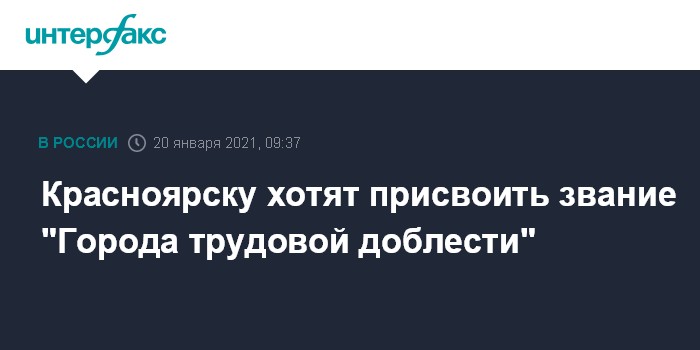 Голосование за присвоение Красноярску звания "Города трудовой доблести" пройдет в интернете с 20 по 16. После этого оргкомитет подаст необходимый пакет документов в конкурсную комиссию.
