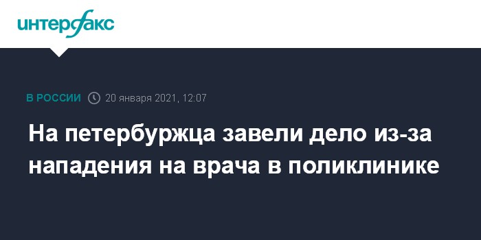 Москва. 20 января. INTERFAX.RU - Уголовное дело о хулиганстве возбуждено в Петербурге по факту нападения на врача в поликлинике, сообщает в среду пресс-служба управления СКР по городу.