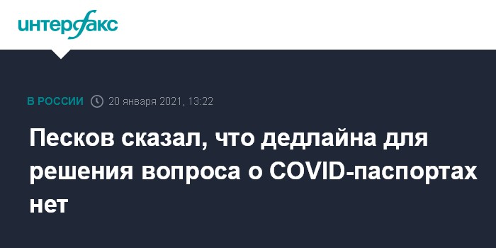 Москва. 20 января. INTERFAX.RU - В Кремле заявили, что дискуссия по поводу введения так называемых ковидных паспортов продолжается и никаких сроков для решения этого вопроса нет.