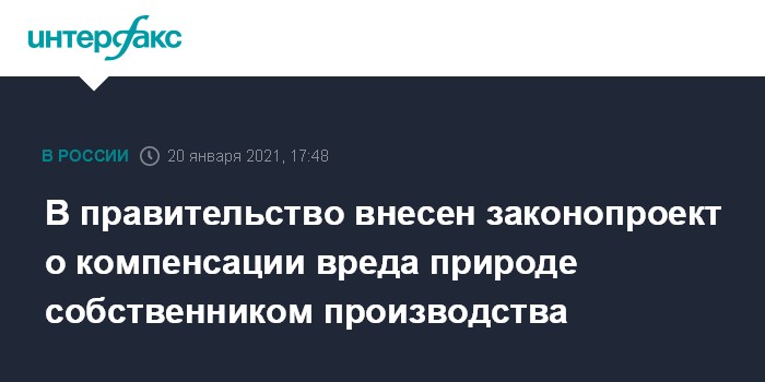 В правительство внесен законопроект о компенсации вреда природе собственником производства