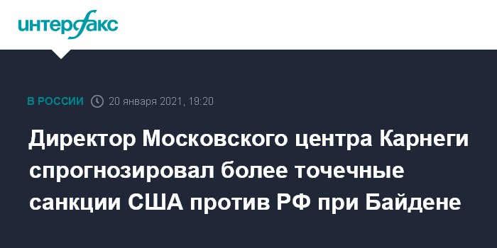 Директор Московского центра Карнеги спрогнозировал более точечные санкции США против РФ при Байдене