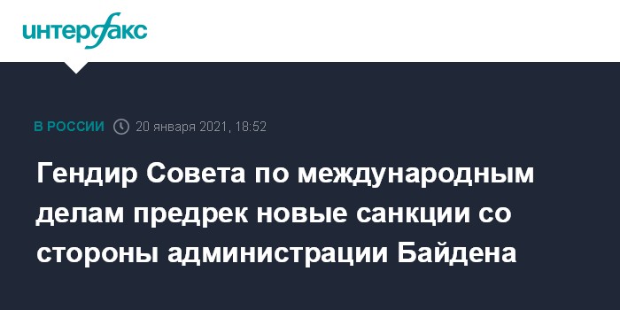 Гендир Совета по международным делам предрек новые санкции со стороны администрации Байдена