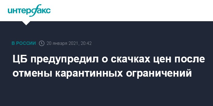 ЦБ предупредил о скачках цен после отмены карантинных ограничений