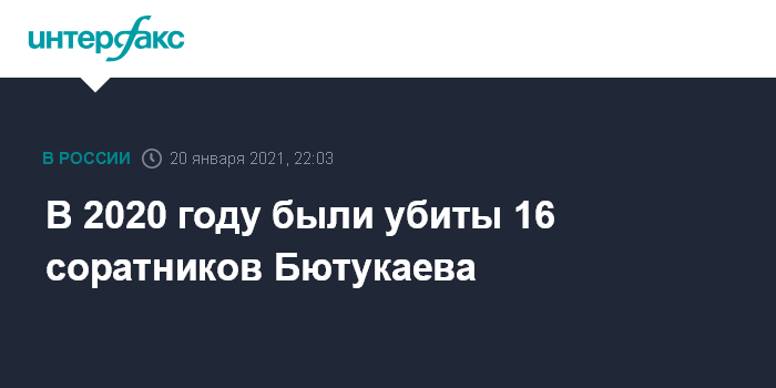 Москва. 20 января. INTERFAX.RU - В 2020 году были убиты 16 подозреваемых участников банды Аслана Бютукаева, лидера чеченского подполья, сообщил Национальный антитеррористический комитет. Среди убитых были боевики, приехавшие с Украины.