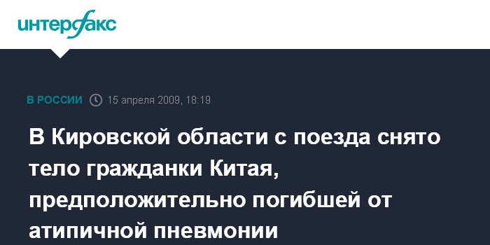 В Кировской области с поезда снято тело гражданки Китая, предположительно погибшей от атипичной пневмонии