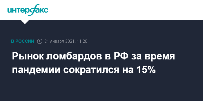 Рынок ломбардов в РФ за время пандемии сократился на 15%