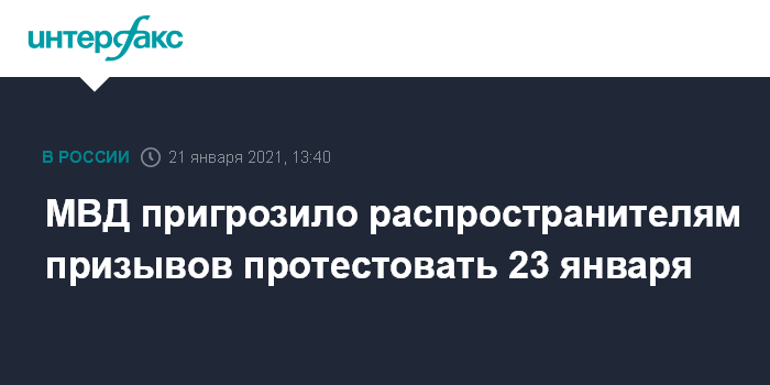 МВД пригрозило распространителям призывов протестовать 23 января