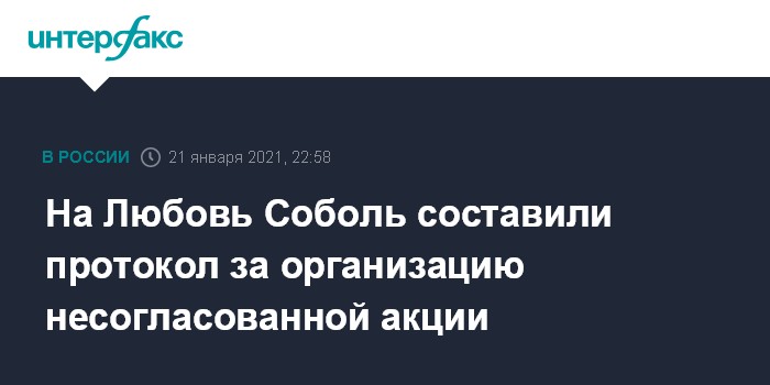 Москва. 21 января. INTERFAX.RU - Юристу Фонда борьбы с коррупцией Любови Соболь вменяется повторное нарушение правил организации или проведения массового мероприятия.