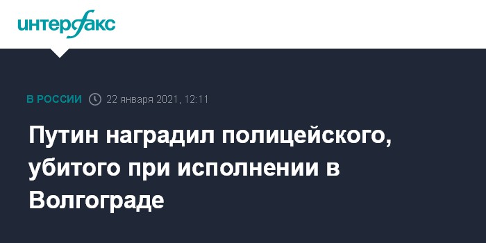 Путин наградил полицейского, убитого при исполнении в Волгограде