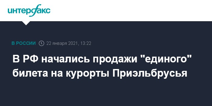 Москва. 22 января. INTERFAX.RU - В России стартовали продажи "единого" билета на курорты Приэльбрусья, перевозки начнутся с 31 января, сообщает АНО "Единая транспортная дирекция" Минтранса РФ в пятницу.