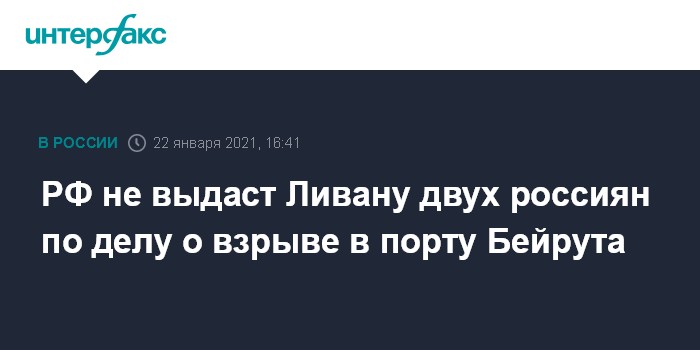 РФ не выдаст Ливану двух россиян по делу о взрыве в порту Бейрута