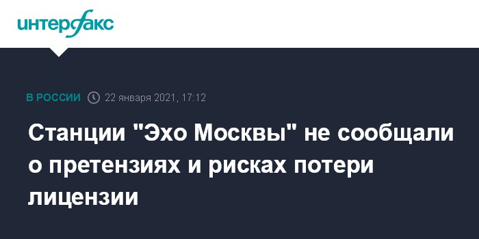 Станции "Эхо Москвы" не сообщали о претензиях и рисках потери лицензии