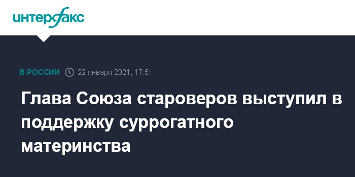Москва. 22 января. INTERFAX.RU - Глава Всемирного союза староверов Леонид Севастьянов выступил с поддержкой суррогатного материнства как такового, при этом он считает, что российские женщины должны вынашивать детей только для россиян.