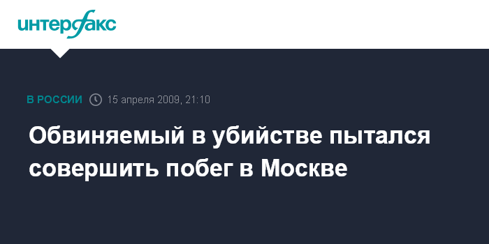 Москва. 15 апреля. ИНТЕРФАКС-МОСКВА - В Москве предотвращена попытка побега обвиняемого в убийстве.