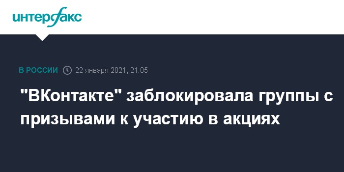 Москва. 22 января. INTERFAX.RU - Социальная сеть "ВКонтакте" по требованию надзорных органов заблокировала группы, где, по мнению надзорных органов, призывают детей к участию в несанкционированных акциях, сообщили в пресс-службе соцсети.