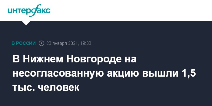 Москва. 23 января. INTERFAX.RU - На несанкционированную акцию в поддержку оппозиционера Алексея Навального в субботу в Нижнем Новгороде вышли около 1,5 тыс. участников, подсчитали в мэрии города.