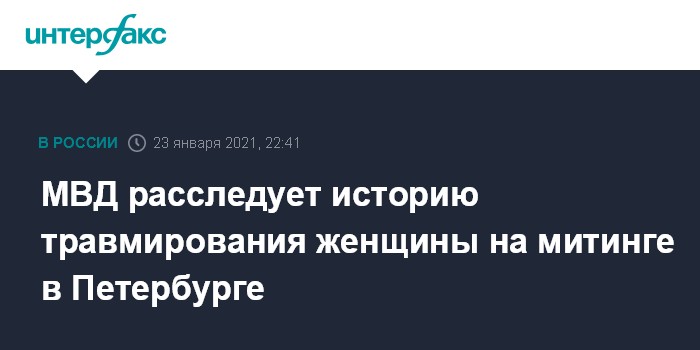 Москва. 23 января. INTERFAX.RU - МВД выяснит, при каких обстоятельствах женщина получила травму во время акции в поддержку Алексея Навального в Санкт-Петербурге, сообщили "Интерфаксу" в ведомстве в субботу.