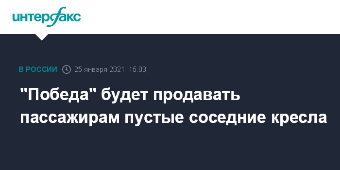 Москва. 25 января. INTERFAX.RU - Авиакомпания "Победа" (входит в группу "Аэрофлот") запустила услугу бронирования пустого соседнего кресла.